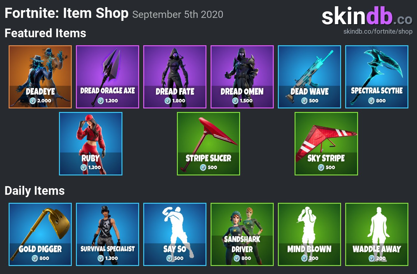 Skin Database On Twitter Fortnite Daily Item Shop For September 5th 2020 More Details For Each Skin Https T Co Gakja3hz5j